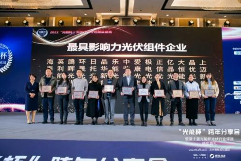 “光能杯”評(píng)選活動(dòng)于2012年正式啟動(dòng),是光伏行業(yè)最受矚目的行業(yè)評(píng)選活動(dòng)。歷經(jīng)前期投票角逐和層層篩選,16日晚,第十屆“光能杯”大獎(jiǎng)揭榜,環(huán)晟光伏憑借卓越的產(chǎn)品和服務(wù)在眾多參評(píng)企業(yè)中脫穎而出,斬獲“最具影響力光伏組件企業(yè)”獎(jiǎng),銷售總監(jiān)沈貫上臺(tái)領(lǐng)獎(jiǎng)。