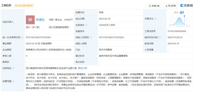 天眼查資料顯示,四川五糧液新能源投資有限責任公司經(jīng)營范圍包括新興能源技術(shù)研發(fā);自有資金投資的資產(chǎn)管理服務;合同能源管理;成品油批發(fā);石油制品銷售;潤滑油銷售;燃氣經(jīng)營等。