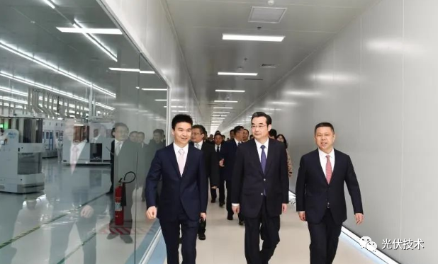 活動開始前,參加活動的領(lǐng)導共同見證了淮安經(jīng)濟技術(shù)開發(fā)區(qū)與天合光能股份有限公司總投資50億元的10GW高效光伏電池生產(chǎn)項目簽約,參觀了天合光能淮安基地一期項目光伏組件和光伏電池車間。
