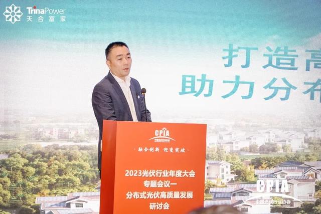 2023年12月14日,為深入探討新形勢下光伏市場發(fā)展情況、發(fā)展方向與路徑,促進行業(yè)交流與溝通,由中國光伏行業(yè)協(xié)會與宿遷市人民政府聯(lián)合主辦的“2023光伏行業(yè)年度大會”在宿遷盛大開幕,天合富家能源股份有限公司董事長高海純應(yīng)邀出席并為分布式光伏高質(zhì)量發(fā)展研討會致辭。
