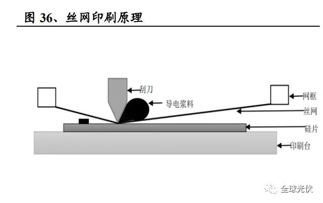 光伏電池表面膜層不具備收集電子及空穴的能力,因此需要在電池的正背面 印刷銀漿或鋁漿,并通過(guò)高溫?zé)Y(jié)形成良好的金屬半導(dǎo)體接觸,將光生載流子導(dǎo) 出至外電路中形成電流。