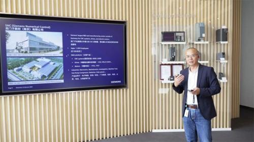 西門子數(shù)控(南京)有限公司總經(jīng)理周郁榮在2023西門子中國(guó)零碳先鋒媒體行首站為記者講解