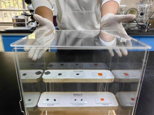 華東理工大學(xué)科研人員展示鈣鈦礦單晶晶片通用生長技術(shù)。新華社記者吳振東攝