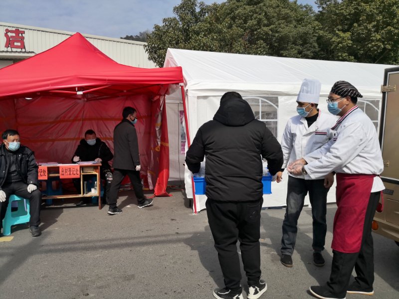 2月11日,中國能建浙江火電所屬的能華物業(yè)臺電服務(wù)中心,把送餐車開到了臺州電廠附近的前所街道關(guān)卡防控檢查點(diǎn),將70份“愛心工作餐”,送到參與卡點(diǎn)檢查的志愿者手中,這已經(jīng)是能華物業(yè)第4天來送餐了。