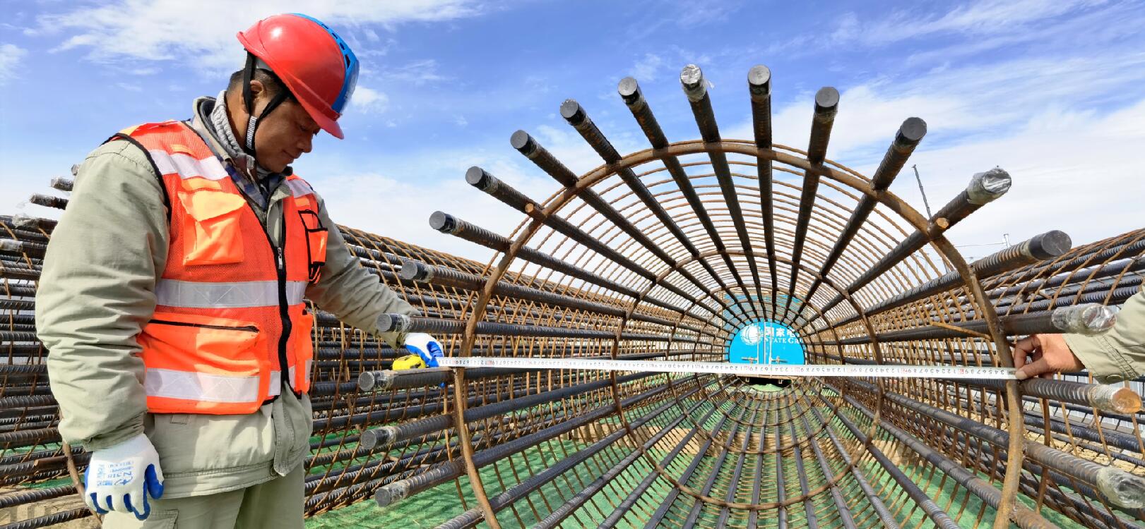 11月9日,在湖北省 鐘祥市豐樂鎮(zhèn)楓梓院村 ,湖北送變電公司施工員方漢斌在白鶴灘至江蘇±800千伏特高壓直流輸電線路(鄂7標(biāo)段)漢江大跨越現(xiàn)場, 認(rèn)真檢查基礎(chǔ)鋼筋籠主筋長度、直徑。該工程是國家“西電東送”戰(zhàn)略部署的重點(diǎn)工程,也是加大基礎(chǔ)設(shè)施領(lǐng)域補(bǔ)短板力度的工程之一。工程建成后,對優(yōu)化國家能源配置、保障電力安全穩(wěn)定供應(yīng)、推動(dòng)綠色發(fā)展等具有重要戰(zhàn)略意義。(張周、郭暉 攝影)