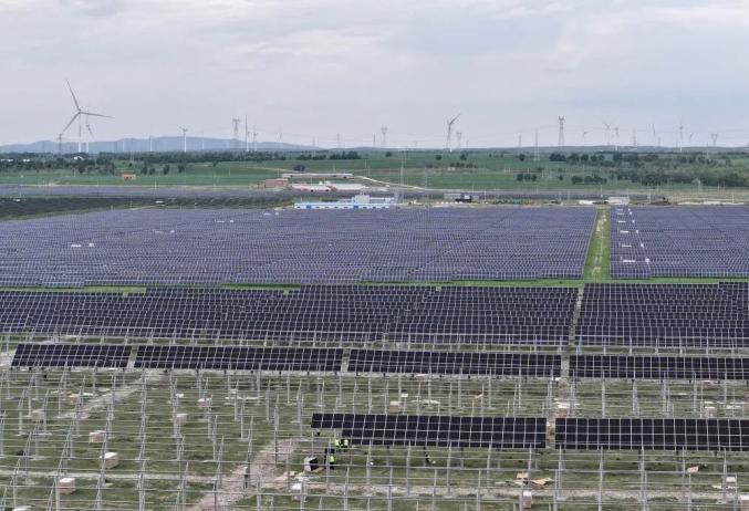 這是張家口市康??h張紀(jì)鎮(zhèn)一處施工中的光伏發(fā)電場(chǎng)(7月11日攝,無(wú)人機(jī)照片)。新華社記者 楊世堯 攝