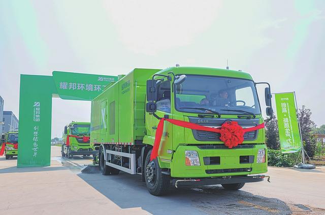 山西耀邦環(huán)境裝備工程有限公司生產(chǎn)的綠色環(huán)衛(wèi)車輛正式下線。山西經(jīng)濟(jì)日?qǐng)?bào)全媒體記者翁劍攝