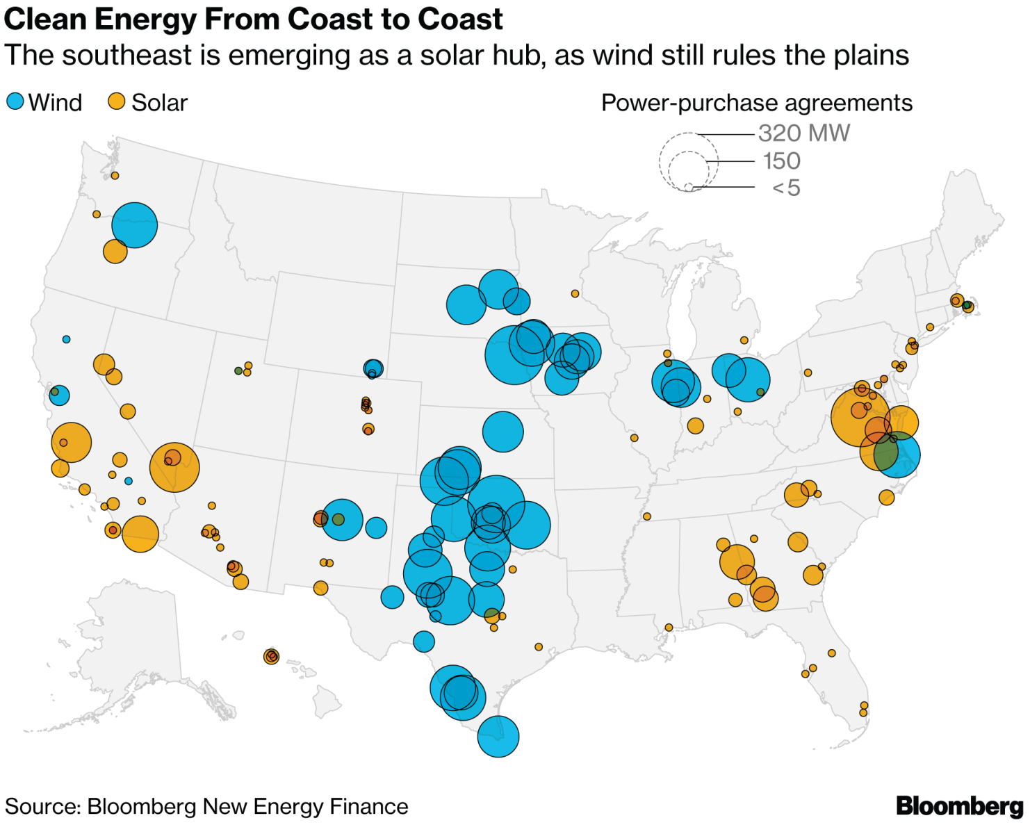 在美國(guó)簽署長(zhǎng)期合同購(gòu)買清潔能源的公司一般都在尋找風(fēng)力發(fā)電的中心地帶和沿海國(guó)家的太陽能。