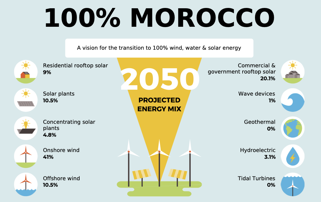 摩洛哥計劃到2030年實(shí)現(xiàn)可再生能源滿足50%電力需求,到2050年要實(shí)現(xiàn)100%滿足電力需求。