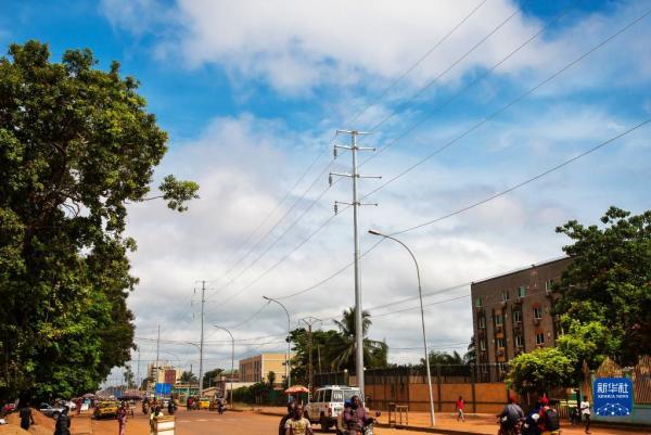 這是6月2日在中非共和國首都班吉附近的賓博市拍攝的援中非光伏電站項目的輸電線路和桿塔。新華社記者羅毓攝