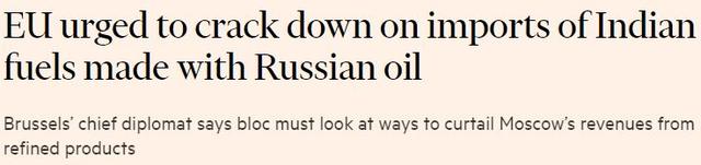 △英國(guó)《金融時(shí)報(bào)》網(wǎng)站報(bào)道:歐盟敦促打擊進(jìn)口使用俄羅斯原油生產(chǎn)的印度燃料