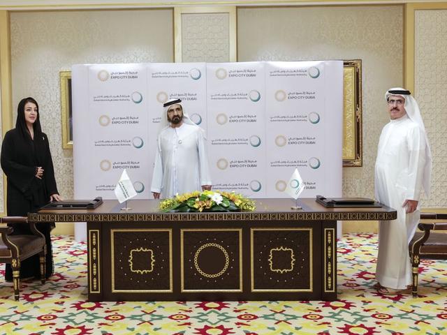 在阿聯(lián)酋副總統(tǒng)兼總理、迪拜酋長(zhǎng)謝赫穆罕默德·本·拉希德·阿勒馬克圖姆的見證下,迪拜世博城與迪拜水電局(DEWA)簽署協(xié)議,全力推進(jìn)使用可再生能源為世博城供電。此次合作標(biāo)志著世博城向2050年凈零排放目標(biāo)邁出重大步伐。