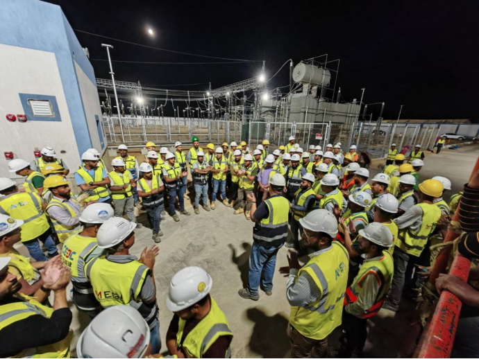 為確保倒送電工作順利完成,項目部科學(xué)組織、精心策劃,積極協(xié)調(diào)業(yè)主方、民防局和埃及電網(wǎng)公司等相關(guān)單位,按照時序計劃,逐步驗收,特別是在倒送電開始前,對相關(guān)部門專業(yè)人員進行全面的安全與技術(shù)交底,嚴格執(zhí)行倒送電調(diào)試措施。在項目業(yè)主和埃及電網(wǎng)公司相關(guān)負責人的見證下,整個受電過程順利、可控且受電后各系統(tǒng)設(shè)備運行正常,參數(shù)準確無誤。