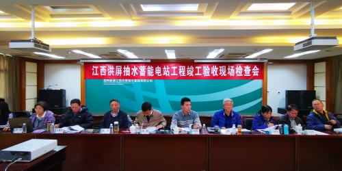 驗(yàn)收委員會(huì)會(huì)議于2019年12月6日在南昌召開。會(huì)議由王忠耀副院長(zhǎng)主持。會(huì)議首先由主任委員王忠耀介紹了竣工驗(yàn)收的依據(jù)、程序和驗(yàn)收委員會(huì)成員,隨后,工程運(yùn)行管理單位洪屏公司李幼勝董事長(zhǎng)致詞,會(huì)議先后聽取了洪屏抽水蓄能有限公司關(guān)于工程建設(shè)、電站運(yùn)行管理及竣工驗(yàn)收專項(xiàng)驗(yàn)收情況的匯報(bào),設(shè)計(jì)院關(guān)于工程設(shè)計(jì)情況的匯報(bào),以及驗(yàn)收專家組關(guān)于驗(yàn)收結(jié)論意見的介紹。與會(huì)各位委員、代表就工程竣工驗(yàn)收條件和存在的問題進(jìn)行了研究和討論。驗(yàn)收委員會(huì)同意江西洪屏抽水蓄能電站通過工程竣工驗(yàn)收。
