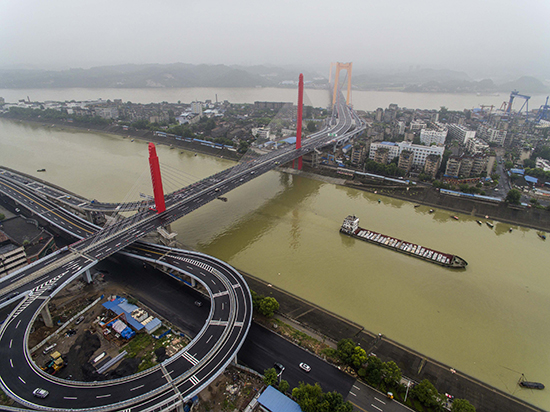 至喜長江大橋是湖北宜昌市建設(shè)的第六座長江大橋,葛洲壩路橋公司以BT模式投資參建了至喜長江大橋,并獨(dú)立承擔(dān)了三江橋與引橋、西壩立交與江北立交的全部施工任務(wù),于2016年7月正式建成通車試運(yùn)營。在施工過程中,葛洲壩路橋公司始終堅(jiān)持科技創(chuàng)新,提升工程品質(zhì),攻克了不對稱弧形變截面薄翼板箱梁掛籃施工技術(shù)、加高鏤空液壓爬架翻模施工技術(shù)、塔吊大橫桿超長附作技術(shù)、快速拼裝0號塊支架施工技術(shù)、鋼混結(jié)合圍堰施工技術(shù)等關(guān)鍵技術(shù),取得了豐富的科技創(chuàng)新成果。研發(fā)的《中央索面不對稱弧形變截面箱梁斜拉橋施工關(guān)鍵技術(shù)》,被中國公路建設(shè)行業(yè)協(xié)會鑒定為國際先進(jìn),成功解決了斜拉橋施工中一系列技術(shù)難題,促進(jìn)了該橋型在橋梁建設(shè)行業(yè)內(nèi)的發(fā)展。