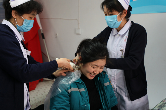 這是黃河三門峽醫(yī)院呼吸科護士付艷婷邊剪短發(fā),邊和同事的對話。