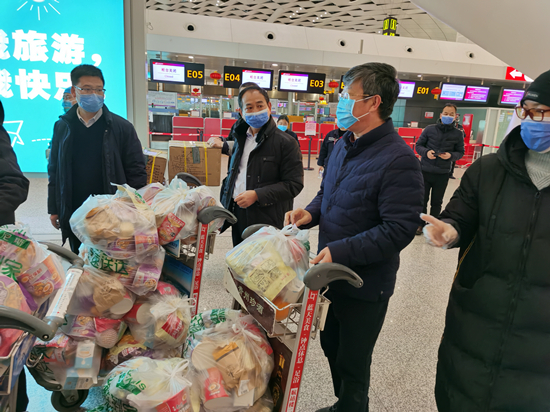 行政事務部專門為黃河三門峽醫(yī)院馳援武漢的醫(yī)護人員準備了食品和生活用品,并送到新鄭機場,交到醫(yī)護人員手中。
