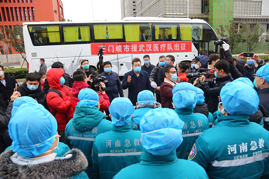 2月15日上午11點半,三門峽市委書記劉南昌,市委副書記、市長安偉等領導在三門峽為白衣戰(zhàn)士們深情送行。