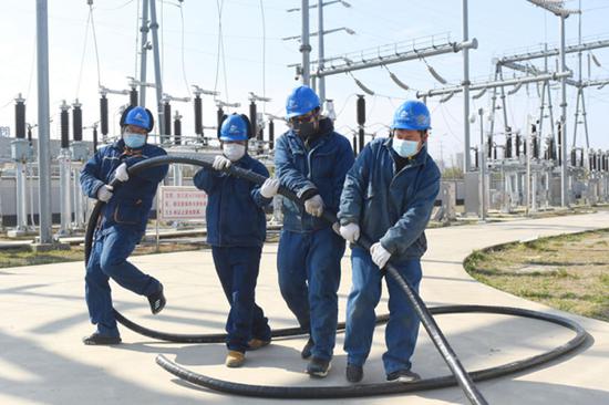 2月13日,在蕭縣丁里工業(yè)園,蕭縣供電公司副總經(jīng)理王海濤帶著營銷部負(fù)責(zé)人和供電所服務(wù)人員來到生產(chǎn)醫(yī)用防護(hù)口罩的華源家居用品公司,為該企業(yè)全面檢查用電設(shè)備、優(yōu)化保供電方案,設(shè)立常駐保供電客戶經(jīng)理,確保企業(yè)用電無憂。(馮巖 李令響)