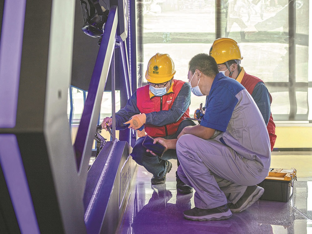 10月28日,窗外寒風(fēng)刺骨,室內(nèi)暖意融融。在新疆游客集散中心的二樓,十幾名游客正體驗大型虛擬現(xiàn)實(VR)項目。烏魯木齊供電公司客戶經(jīng)理安志偉、孫勵斌正在新疆游客集散中心檢查用電情況。