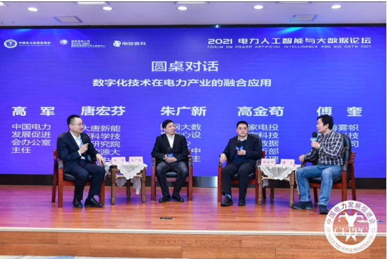 對(duì)話環(huán)節(jié),主持人中國電力發(fā)展促進(jìn)會(huì)辦公室主任高軍與大唐新能源科學(xué)技術(shù)研究院新能源大數(shù)據(jù)中心副主任唐宏芬(線上)、國網(wǎng)大數(shù)據(jù)中心設(shè)計(jì)中心(創(chuàng)新中心)副主任朱廣新、國家電投數(shù)字科技公司數(shù)據(jù)與分析部高級(jí)經(jīng)理高金茍、上海霧幟智能科技有限公司CTO傅奎四位行業(yè)專家,以”數(shù)字化技術(shù)在電力產(chǎn)業(yè)的融合應(yīng)用”為主題,從國網(wǎng)大數(shù)據(jù)中心、國家電投數(shù)科以及大唐新能源公司在數(shù)據(jù)治理、應(yīng)用、開放、共享實(shí)踐經(jīng)驗(yàn)展開分析,就如何推進(jìn)數(shù)字化技術(shù)與電力行業(yè)的深度融合、推動(dòng)電網(wǎng)企業(yè)生產(chǎn)、經(jīng)營、管理、服務(wù)業(yè)態(tài)的深度變革進(jìn)行深入探討。