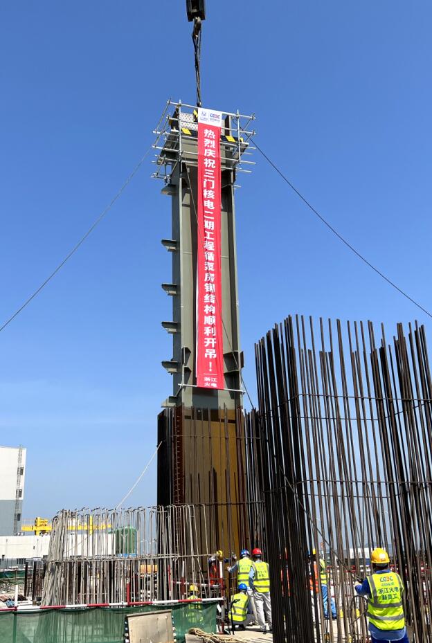 本網(wǎng)訊 7月27日上午,中國能建設(shè)計參建的三門核電二期工程循泵房鋼結(jié)構(gòu)正式開吊。