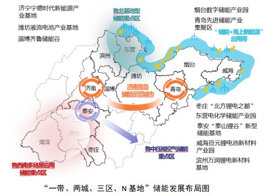 2022年底,《山東省新型儲能工程發(fā)展行動方案》正式印發(fā)。其中明確,山東將著力構(gòu)建“一帶、兩城、三區(qū)、N基地”發(fā)展格局,包括:打造“儲能+海上新能源”應(yīng)用帶,建設(shè)濟南、青島儲能示范城市,構(gòu)建魯北、魯中、魯西多個儲能重點區(qū),培育一批特色鮮明的產(chǎn)業(yè)基地,實現(xiàn)新型儲能由商業(yè)化初期向規(guī)模化發(fā)展轉(zhuǎn)變。