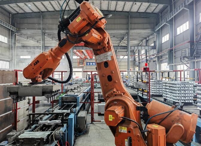 圖為中國五礦所屬株冶新材鑄造鋅合金自動化生產(chǎn)線碼錠機(jī)器人