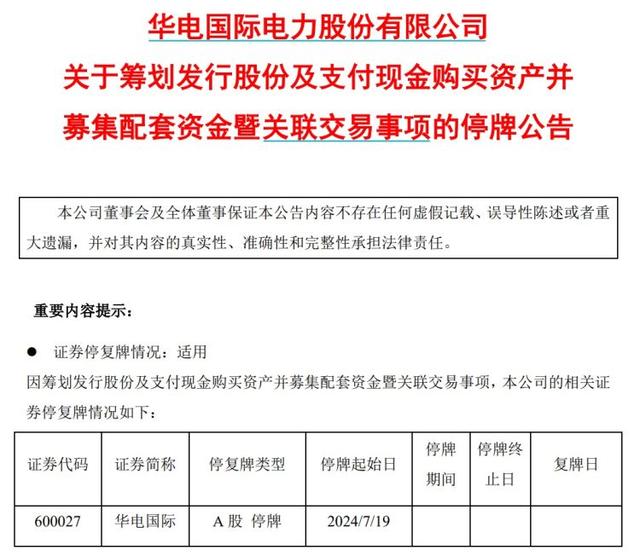7月18日晚間,華電國(guó)際一紙公告宣布,該公司收到控股股東中國(guó)華電集團(tuán)有限公司(以下簡(jiǎn)稱華電集團(tuán))通知,擬籌劃與公司有關(guān)的資產(chǎn)重組事項(xiàng),其股票于7月19日停牌。