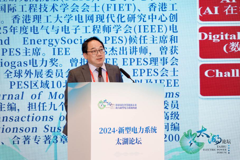 加拿大工程院院士、香港理工大學(xué)鐘志勇教授作了題為《智能電網(wǎng)技術(shù)革新:人工智能和數(shù)字孿生的新機(jī)遇與挑戰(zhàn)》的主旨報(bào)告