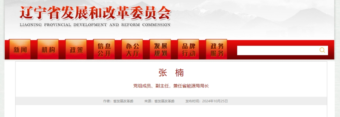 10月25日,遼寧省發(fā)改委官網(wǎng)公布新任黨組成員、副主任張楠,兼任省能源局局長。
