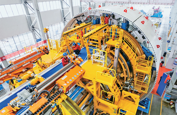圖為當(dāng)日,在鐵建重工長(zhǎng)沙第一產(chǎn)業(yè)園,工人在調(diào)試“江漢新石器號(hào)”隧道掘進(jìn)機(jī)。 新華社記者 陳思汗/攝
