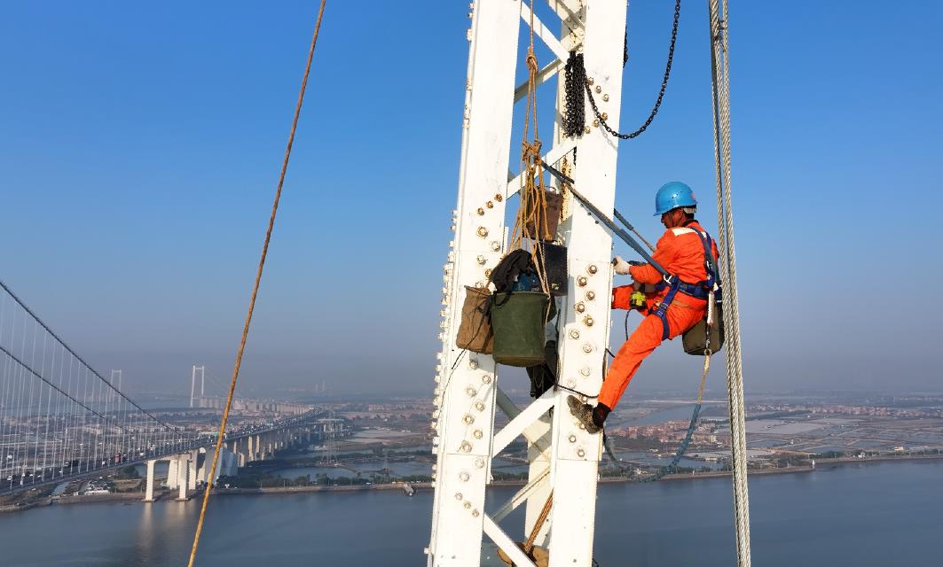 “這是我參與建設(shè)最復(fù)雜、難度最高的大跨越施工。”陳勁松,這位全國勞動模范、南方電網(wǎng)廣東電網(wǎng)能源發(fā)展有限公司送電隊隊長盯著眼前的鐵塔比劃著,新電塔建成后,將提升輸電容量40%,高度將達(dá)到264.5米,刷新國內(nèi)紀(jì)錄,并增強(qiáng)抵御臺風(fēng)的能力,為粵港澳大灣區(qū)電力互聯(lián)互通提供更有力的保障。