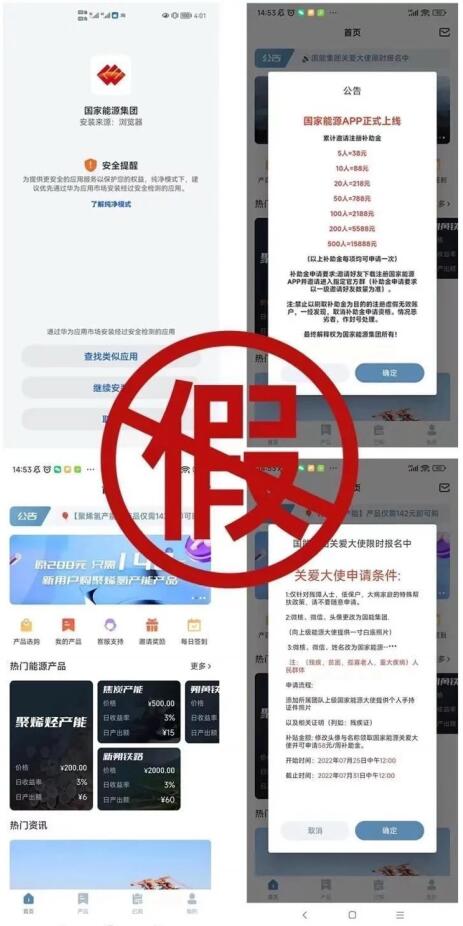8月29日,國家能源集團發(fā)布公告稱,近期,有不法分子假冒“國家能源集團”名義發(fā)布手機應用程序,建立虛假“國家能源官方微信群”,并提供虛假的“神東礦區(qū)”“朔黃鐵路”等所謂“投資產品”。