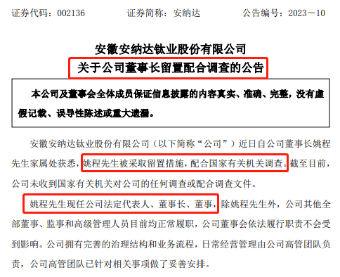 2月27日晚間,已跨界鋰電材料領(lǐng)域的鋰電新秀安納達發(fā)布了《關(guān)于公司董事長留置配合調(diào)查的公告》。