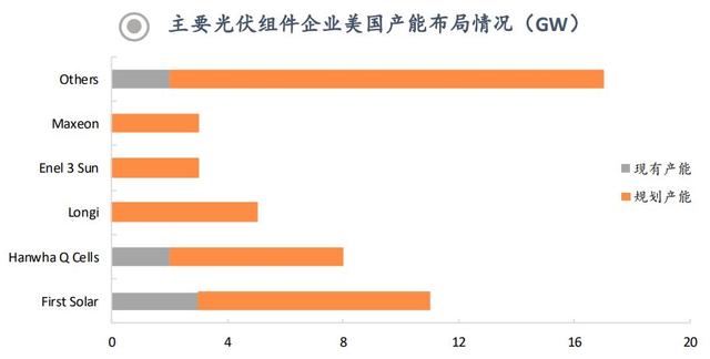 來源:InfoLink,Solar Power World,SEIA,Wood Mackenzie,平安證券(上述項目暫未計入阿特斯7月剛宣布的5GW美國工廠計劃)