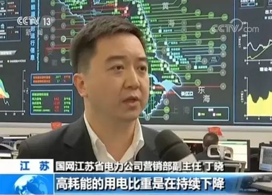 “國網(wǎng)江蘇省電力公司營銷部副主任 丁曉:我們通過2018年的這個情況來看,高耗能的用電比重是在持續(xù)下降的,全年的高耗能的用電的增速基本上是接近于零。這個就能說明我們省里的高耗能產(chǎn)業(yè),應(yīng)該是呈現(xiàn)下降的增長的一個通道。”