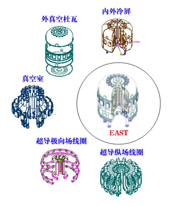 后來,我國的磁約束做到了60秒、1000萬℃,這個成果入選了2003年度中國十大科技進展新聞。但要真正實現(xiàn)核聚變,除了需要點火達到上億攝氏度的高溫,還需要長時間維持。去年美國實現(xiàn)的激光點火是慣性約束,能量要先轉(zhuǎn)換成激光。對磁約束而言,大量的能量消耗在磁籠子的產(chǎn)生。怎樣不讓磁籠子消耗能量呢?那就要靠超導(dǎo)。所以,必須建造新一代全超導(dǎo)托卡馬克核聚變實驗裝置——東方超環(huán)(EAST)。
