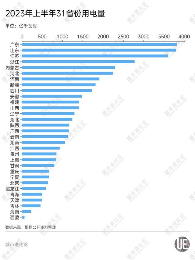 今年上半年,內(nèi)蒙古全社會(huì)用電量達(dá)2296.5億千瓦時(shí),增速高達(dá)10.5%,僅次于海南,位居全國第二位。對比2022年數(shù)據(jù),內(nèi)蒙古一舉超越河北,用電量晉級全國第五。與此同時(shí),遼寧全社會(huì)用電量也超越湖北,晉級全國第13位。