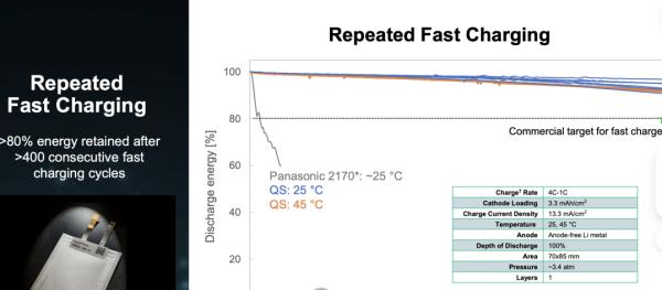 與此同時,測試數(shù)據(jù)還顯示,配備 QuantumScape電池的電動汽車,WLTP 續(xù)航里程為 500-600公里(311—373 英里),在電池的全生命周期內(nèi),可以行駛超過50萬公里(約311,000 英里),不會有任何續(xù)航能力衰退。