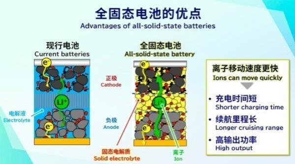 在鋰離子電池中,鋰離子經(jīng)由液體電解質(zhì)從負(fù)極移動到正極,由此產(chǎn)生電流。全固態(tài)電池原理與之相同。理論上,固態(tài)電池的能量密度是鐵鋰電池的2倍,且固態(tài)電池還擁有耐高溫、抗穿刺的超高安全性,以及寬溫域工作窗口等眾多優(yōu)點。