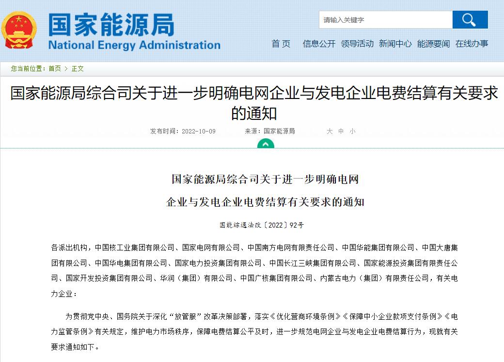 國家能源局綜合司關(guān)于進一步明確電網(wǎng)企業(yè)與發(fā)電企業(yè)電費結(jié)算有關(guān)要求的通知
