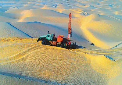 中石化地球物理公司物探隊伍在新疆塔克拉瑪干大漠深處進行油氣勘探,助力我國油氣供應保障能力穩(wěn)步提升。