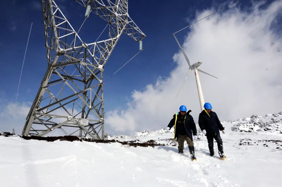南方電網(wǎng)用“一張表”推進(jìn)各個(gè)治理主體履職盡責(zé)。圖為南網(wǎng)貴州六盤水供電局員工在海拔2500多米的六盤水市四格風(fēng)電場巡視檢查風(fēng)力發(fā)電輸出線路。(李泵 攝)