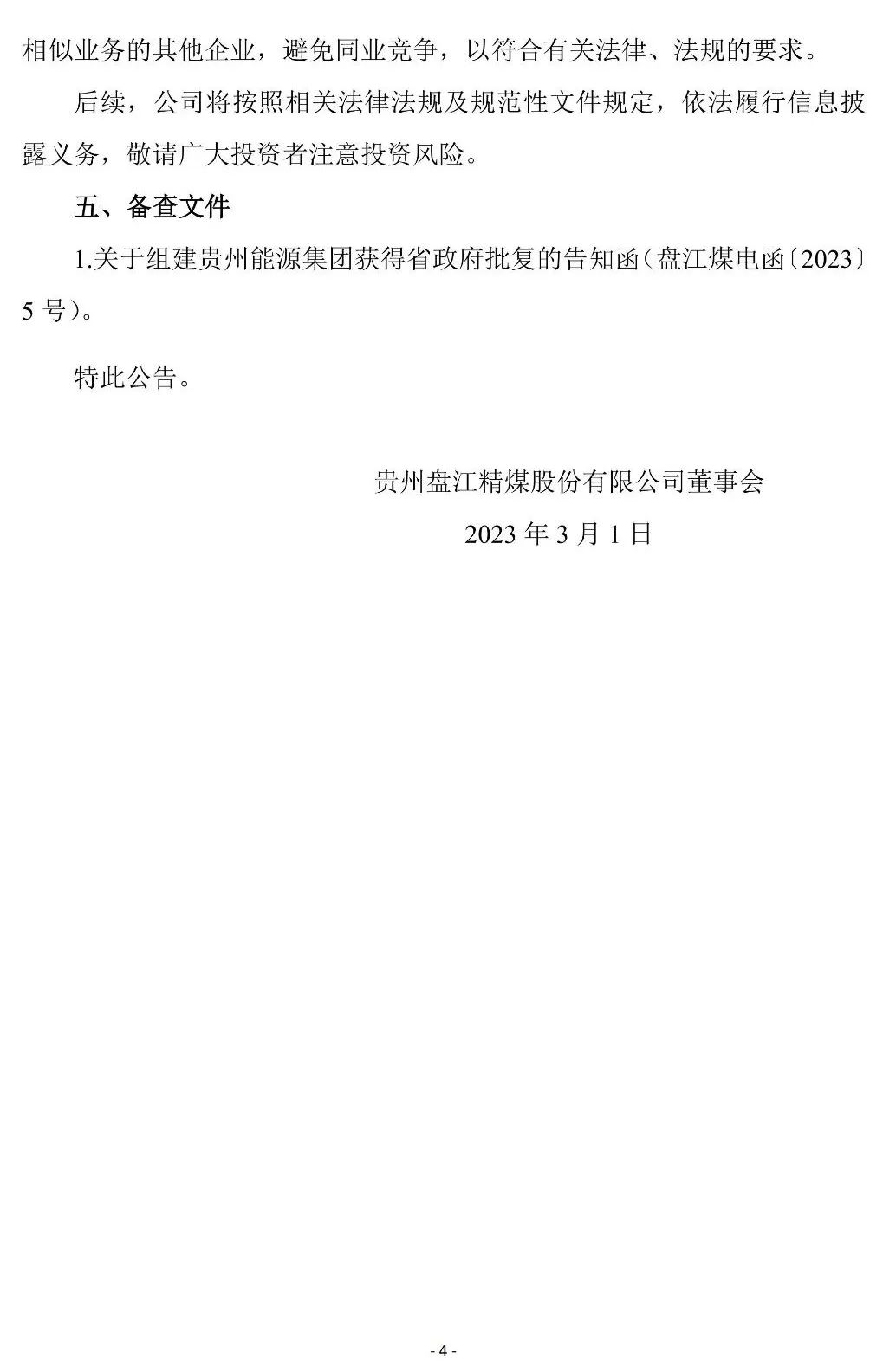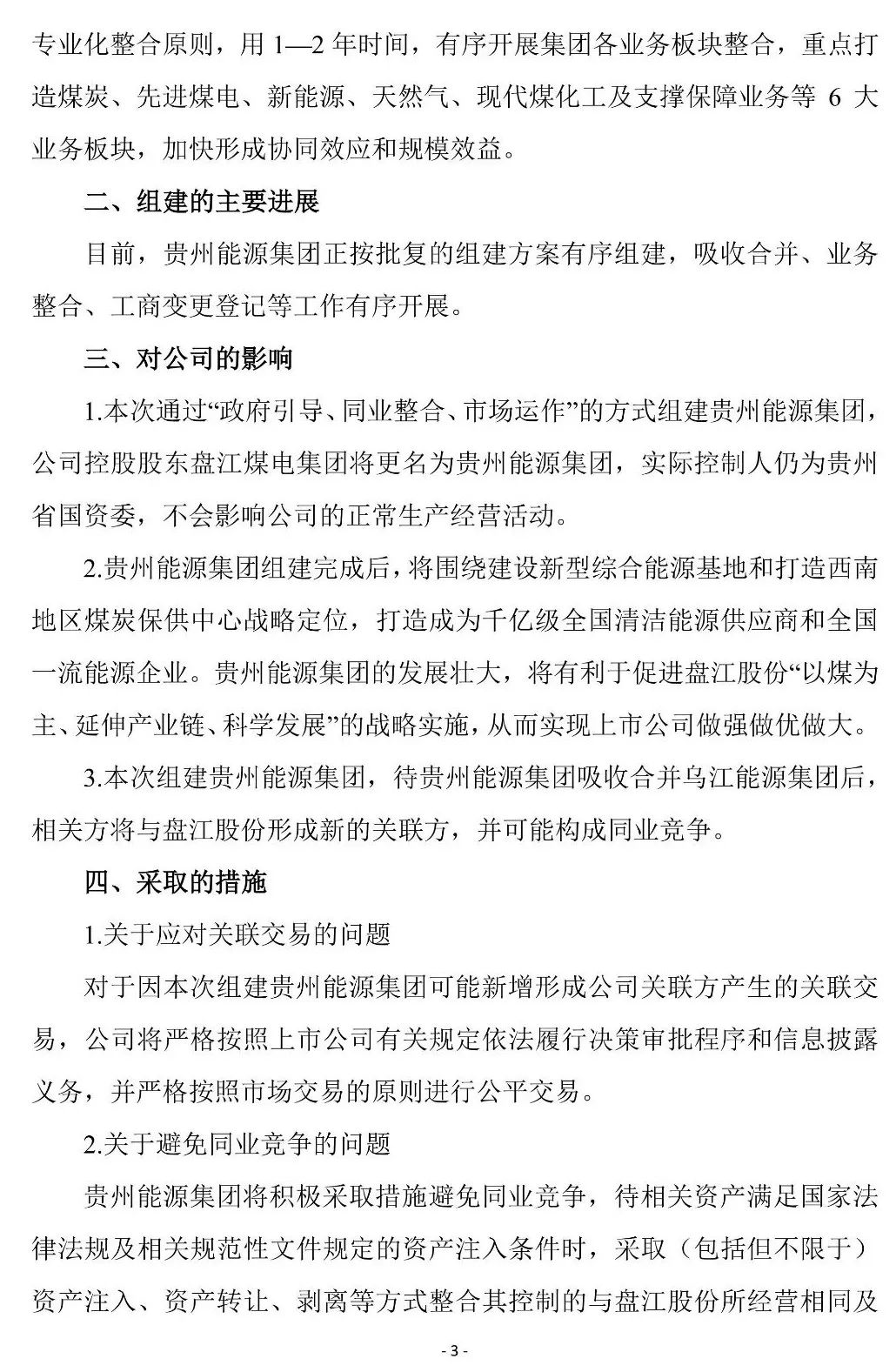 3月1日,盤江股份發(fā)布《關(guān)于控股股東更名的公告》(以下簡稱《公告》)。貴州省擬組建貴州能源集團有限公司(以下簡稱“貴州能源集團”),將盤江煤電集團更名為貴州能源集團。吸收合并貴州烏江能源集團有限責任公司(以下簡稱“烏江能源集團”)后,注銷烏江能源集團。