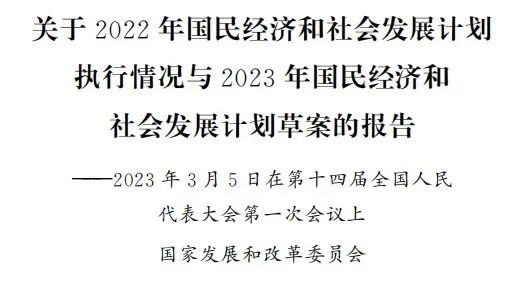 受國務(wù)院委托,現(xiàn)將2022年國民經(jīng)濟(jì)和社會發(fā)展計劃執(zhí)行 情況與2023年國民經(jīng)濟(jì)和社會發(fā)展計劃草案提請十四屆全國人 大一次會議審查,并請全國政協(xié)各位委員提出意見。