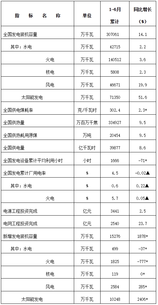 7月20日,國家能源局發(fā)布1-6月份全國電力工業(yè)統(tǒng)計(jì)數(shù)據(jù)。