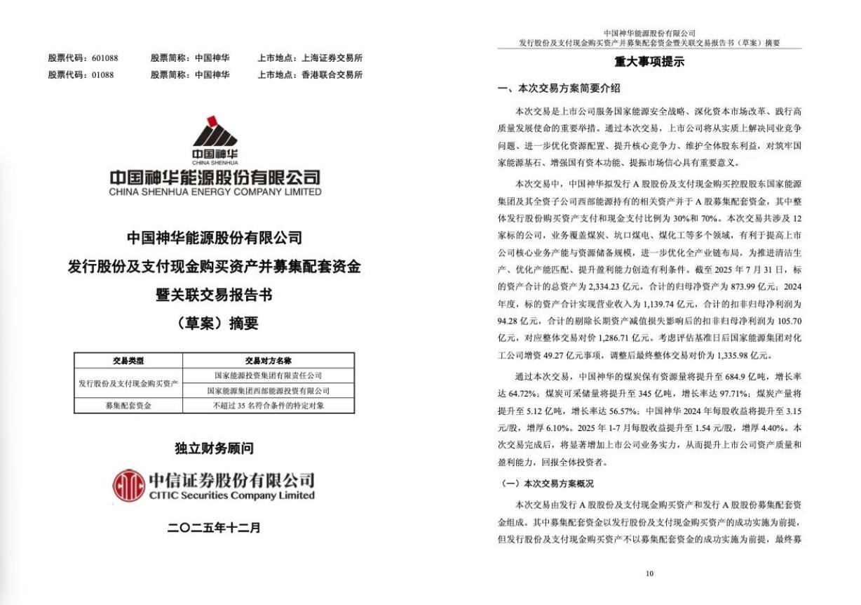 中國神華表示,通過本次交易,將從實質上解決同業(yè)競爭問題、進一步優(yōu)化資源配置、提升核心競爭力、維護全體股東利益,對筑牢國家能源基石、增強國有資本功能、提振市場信心具有重要意義。