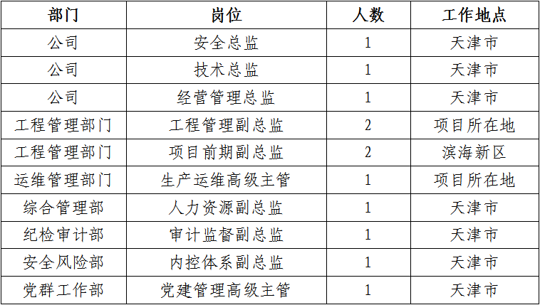 1.本次招聘對任職年限、年齡等的計算時間為2022年8月31日,工作地點為天津市及項目所在地。