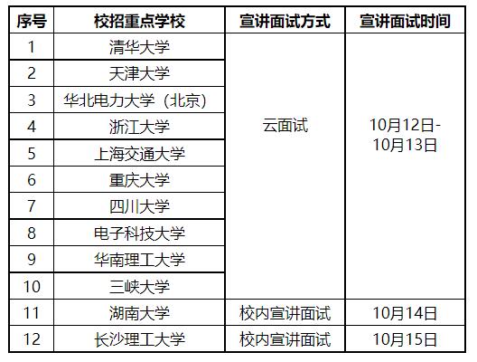 因疫情影響,國(guó)網(wǎng)湖南電力2023年校園招聘長(zhǎng)沙站采取“校內(nèi)宣講面試”,省外其他重點(diǎn)院校采取“云面試”方式開展,宣講面試安排如下(招聘單位及招聘條件詳見前期發(fā)布的招聘公告):